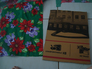 Enquanto isso,meça e recorte os papelões e os tecidos que serão usados para encapá-los.